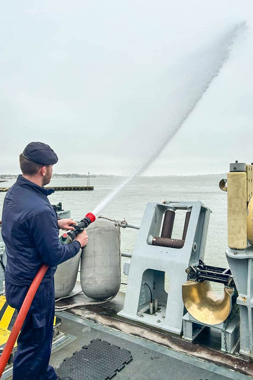 The crew also demonstrated how they tackle onboard fires and explained the safety procedures that keep everyone protected at sea and a lot of us enjoyed firing the water hose far out to sea whilst stood on the deck.