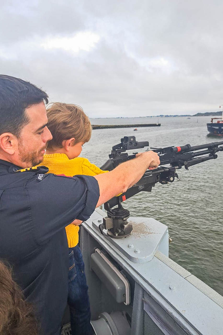 In a moment that thrilled the children in particular, they were even allowed to handle some of the ship’s guns (strictly without ammunition!) and explore much of the equipment under careful supervision.
