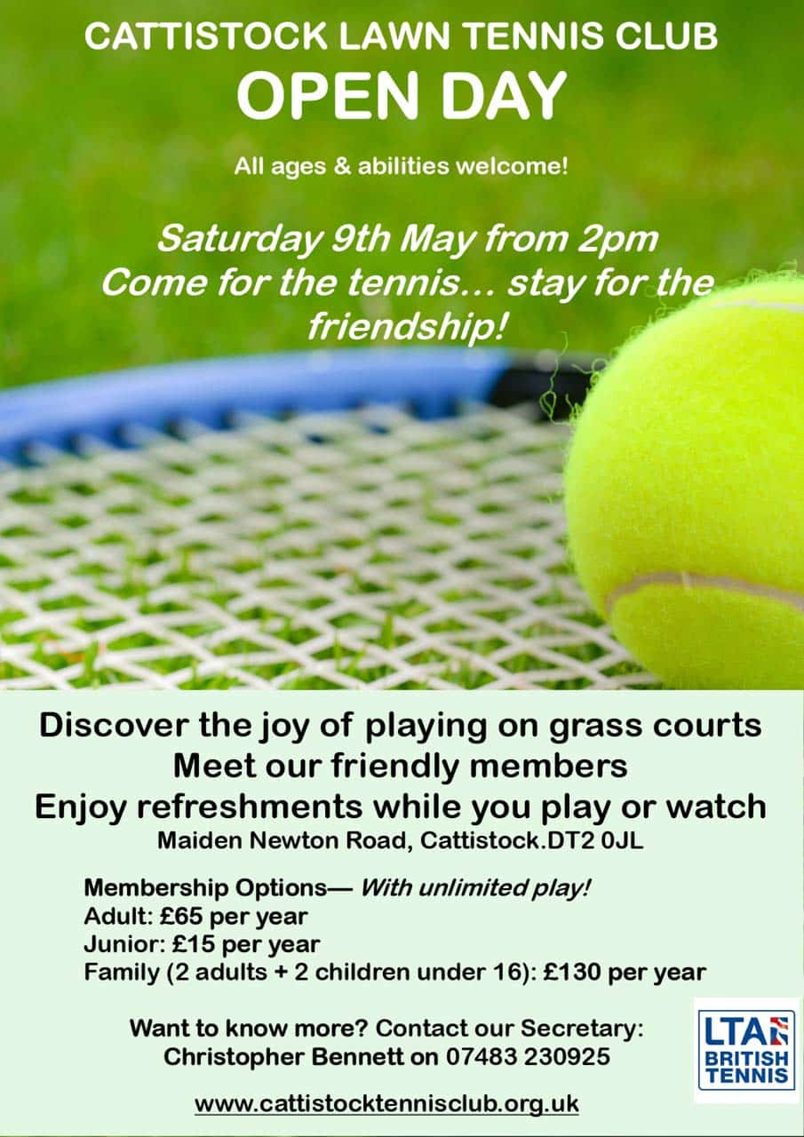 The Courts are open for members from Saturday the 25th April. They are in great shape and we are grateful to the Cattistock Community Fund for their £500 donation towards the ongoing maintenance of the lawn tennis courts.